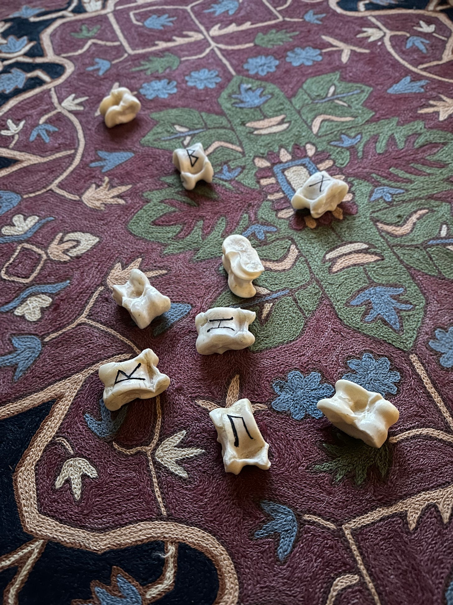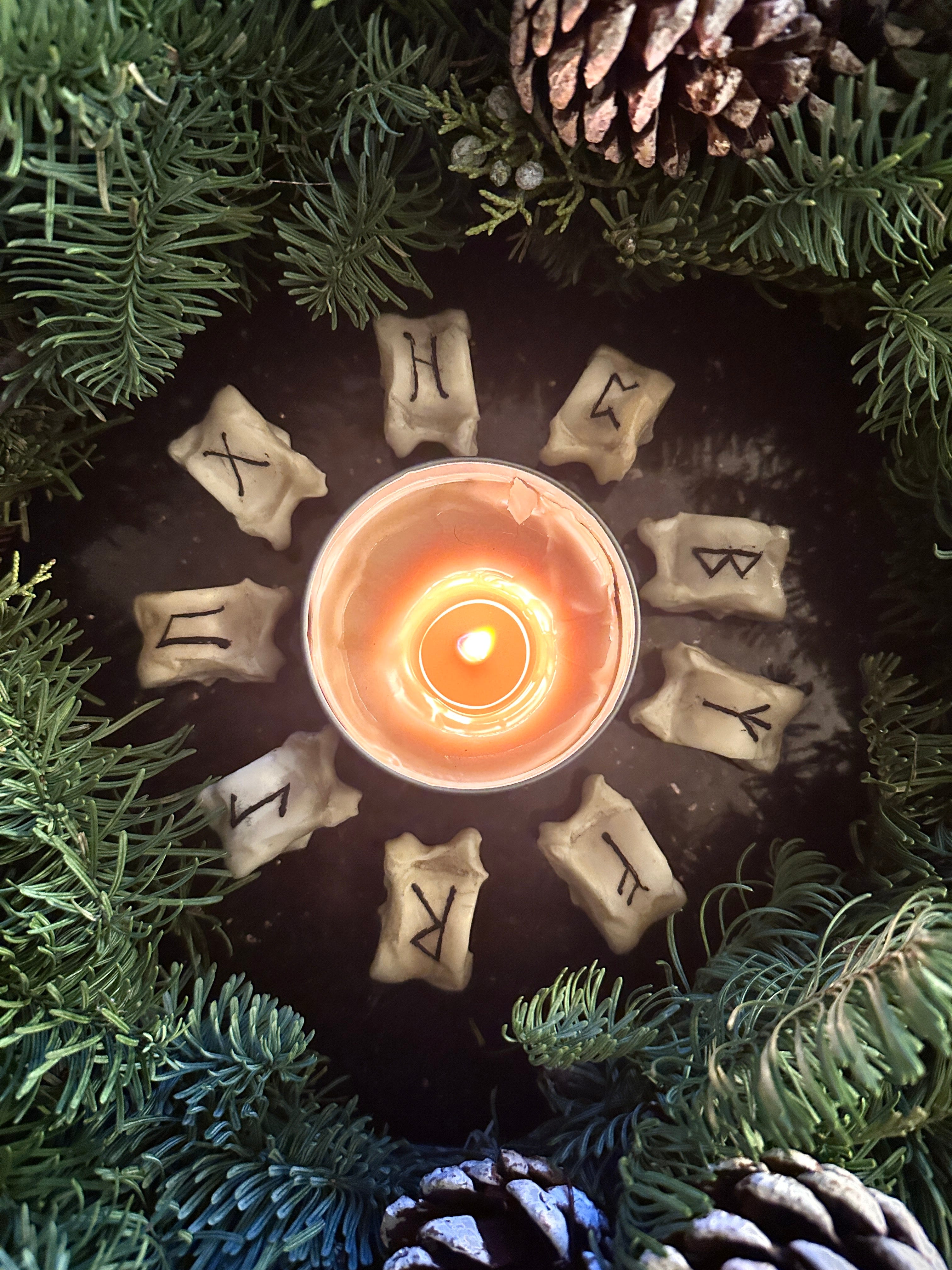 What I’ve come up with is not an attempt to reconstruct a single historical practice, but rather to work in continuity with many older ones, drawing from rune lore, astragalus casting traditions, and animist approaches that understand divination as an act of listening rather than prediction.